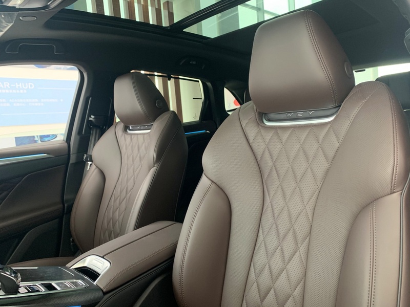 WEY作为长城旗下的豪华子品牌,做工用料的豪华程度在之前的VV6、VV7上都得到了印证。摩卡作为旗舰车型,用料和做工这方面没得挑。坐进车内,视线所及基本都被皮质材料包裹了,座椅上的走线和菱形格的设计都透露出摩卡的豪华感。