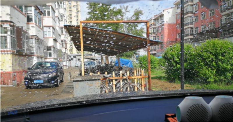 一早起来 下楼发现清晨刚刚下过一场急雨.使整个路面都湿透了