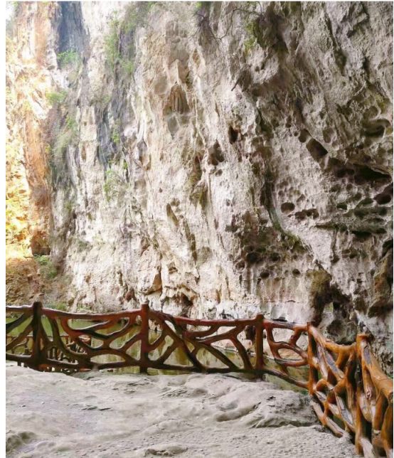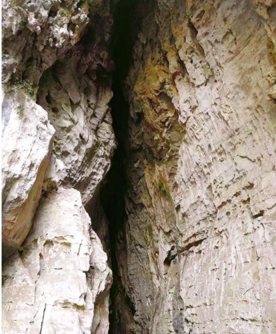 这个地方的悬崖峭壁上有很多沟沟壑壑这里原来是喀斯特地貌,常年收到山中的水侵蚀以后就变成这样了。