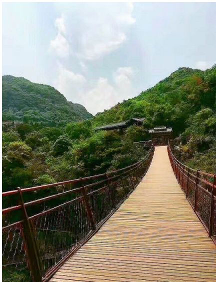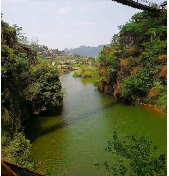 这里的悬空吊索桥有很多,下边是清澈的河水碧绿色的河水绵延流畅- -直通向远方 ,看着这美丽的景色我沉醉了。