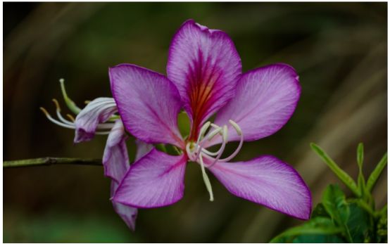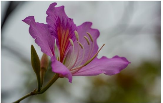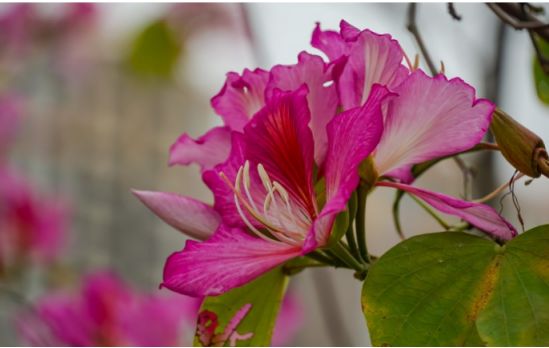 紫荆花树属于亚热带常绿乔木,成年树通常高6~10米,全年都会开花.但每年的十- -月至次年四月为花期最为旺盛的阶段。花朵通常呈红色或红紫色.花大如掌. 10-12厘米:花瓣共有5瓣.其中4瓣分列两侧.两两相对,而另-瓣则翘首于上方.形状如兰花状;花开时香味很浓,花香接近于兰花的清香.故又被称为"兰花树"。
