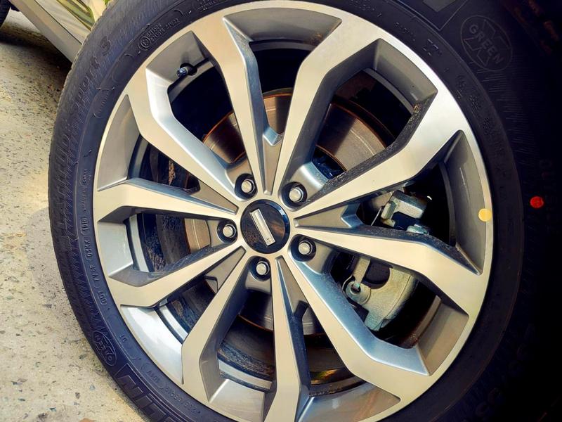 运动感十足的铝合金大轮毂,配上米其林轮胎,一般的马路牙子,都可以轻松的上去。