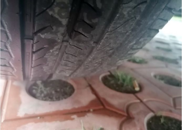 这个发白的地方轻微剐蹭了一下 ,好在橡胶面没破,还能再开两年。