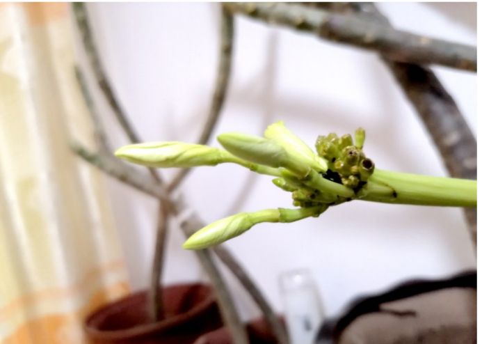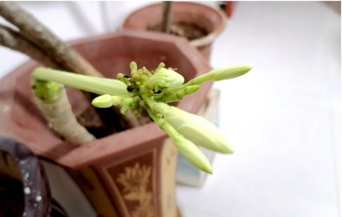 这支花头去年断了,这是插上后活的,比较娇嫩。