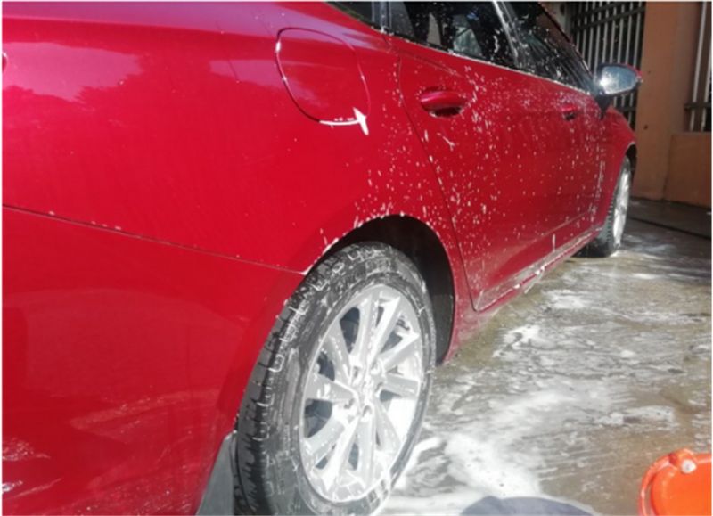 全身涂完泡沫后,静置5分钟,因为我是早上洗车的所以没问题,但是避免在中午和烈日下洗车,最热的一天是中午时,实际上,阳光暴晒的情况下最不适合洗车,尤其是在中午阳光最强的时候。由于在油漆表面上形成的水滴是典型的凸透镜,因此油漆表面会产生局部高温,这不可避免地会对平整汽车油漆表面的光泽度产生不利影响。