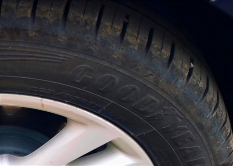 我的车.轮胎重来都没有更换过.毕竟跑的少.只是市区代步来着. 原车就是固特异的御乘系列.专为豪华轿车打造设计.从这个角度可以看到特殊的花纹设计, 这都是具有一定科技含量的.主要是可以起到降低胎噪,增加排水性,还有增加抓地力的作用