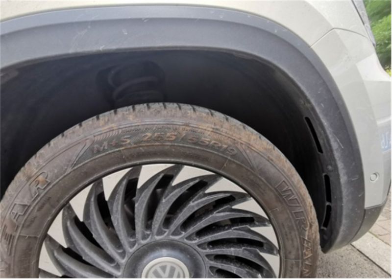 这套轮毂是我后换的;因为喜欢,所以选择;是不是超级炫酷,还有R19尺寸大小刚好合适,配备的还是大品牌固特异的牧马人全天候城市SUV轮胎,通过这么长时间驾驶感受,这套轮胎带给我的感觉还是很不错的,首先就是操控性很棒,拥有全天候路面感应技术,柔软的中央胎面+坚实的胎肩区块可以适应各种路况,提升抓地力,增加操控乐趣,还有静音花纹块设计,可以减缓震动,带来静音和舒适的效果