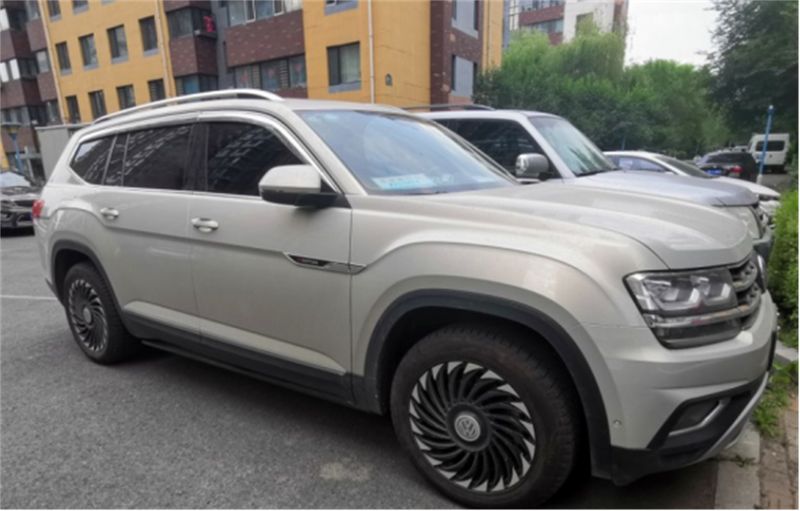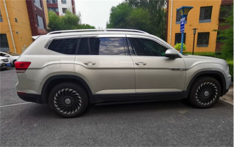 近距离下可以看清楚途昂的车身线条是很犀利的,该直接的地方很直接,该柔和的地方很柔和,总之是软中带硬,硬中带柔,不同角度有不同的视觉感受,虽然平庸但是不简单