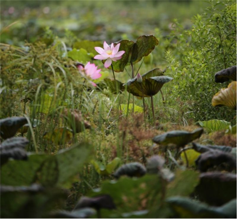 发现草丛中的两朵荷花,背景虚化效果,真不错。