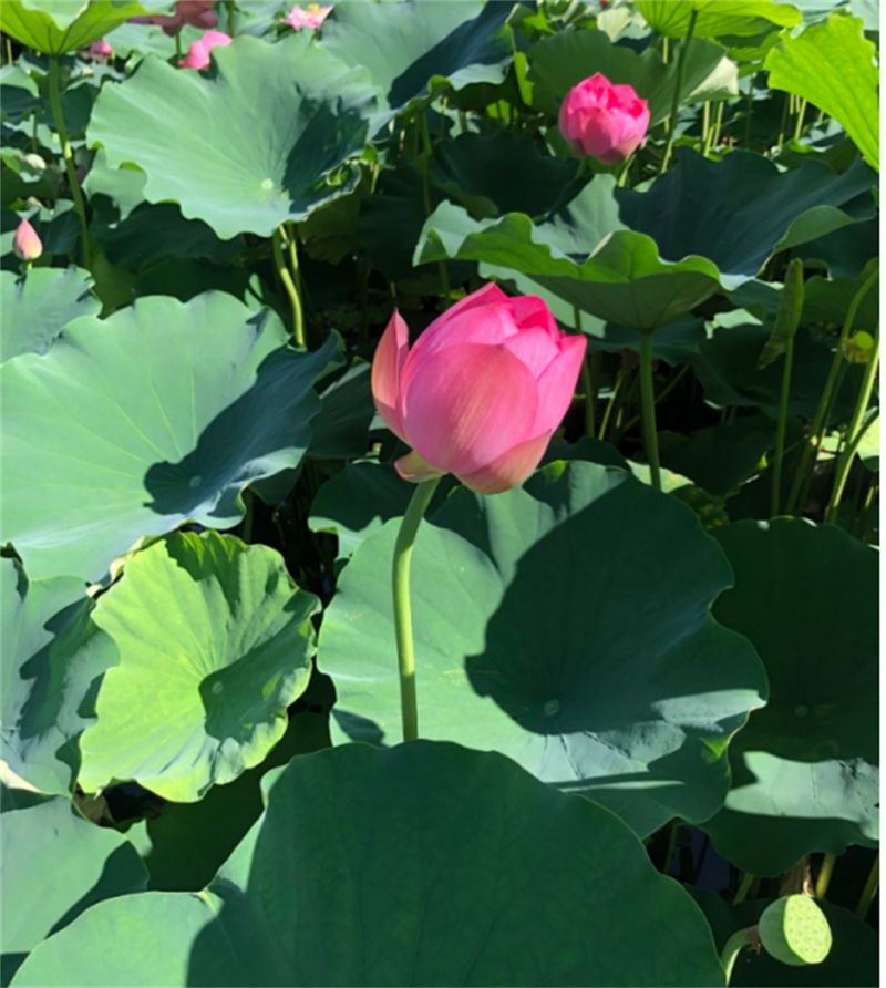 天地之间:蓝天白云下.廊腰缦回,荷叶田田~~~