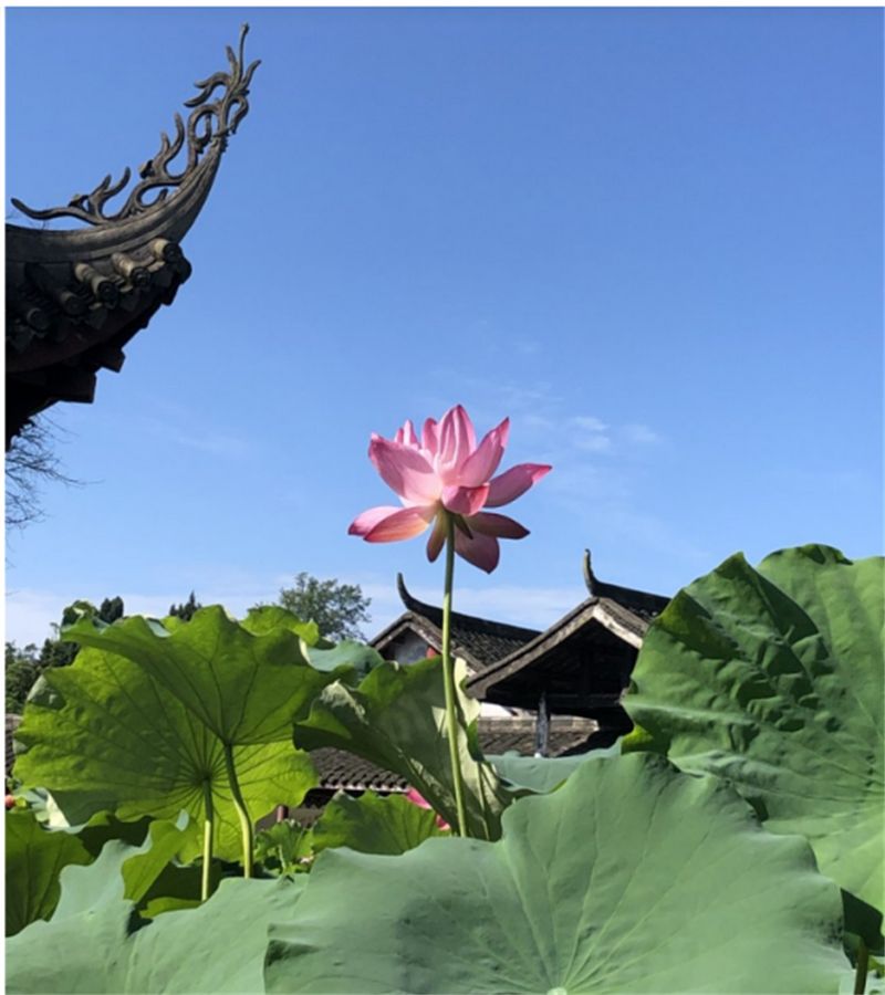 先看看,古典建筑、唯美荷花、湛蓝天空~~~