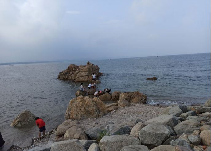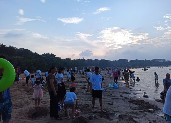 今天终于不那么累了。所以计划早起去海天-色赶海 ,但是现实总是和想象有很大差距.没有捉到想象中的螃蟹和鱼虾只捞到一些小香螺,还有几只小螃蟹!小螃蟹是小红夹子.看着实在是太小了,孩子们都觉得没啥意思.所以最后都给放了和老虎石、鸽子窝相比较.海天一色确实 是挺适合孩子们玩的因为不管落不落潮.在这里都会有所收获,沙滩上的石头堆里有小螃蟹,孩子们喜欢捉螃蟹玩,但是也就只能是玩玩而已。很多人都会把捉到的小螃蟹又都放回去,让它们再长长如果现在把小的都抓走了.估计慢慢会消失的。我们玩的浅滩上真正意义上的海鲜比如八爪鱼如果想抓大一点的鱼 ,就需要坐船去深一些的海里不过.在海天一色看日出还是 挺好的,坐在高耸的礁石上,日出东方非常漂亮,用手机是拍不出现场的效果,可惜只顾着陪孩子们赶海都忘了拍照了。赶海结束后,陪着孩子们继续在沙滩上玩耍.也会去海里玩水,沙滩上的游人越来越多,整个海天一色也越来越执闹。
