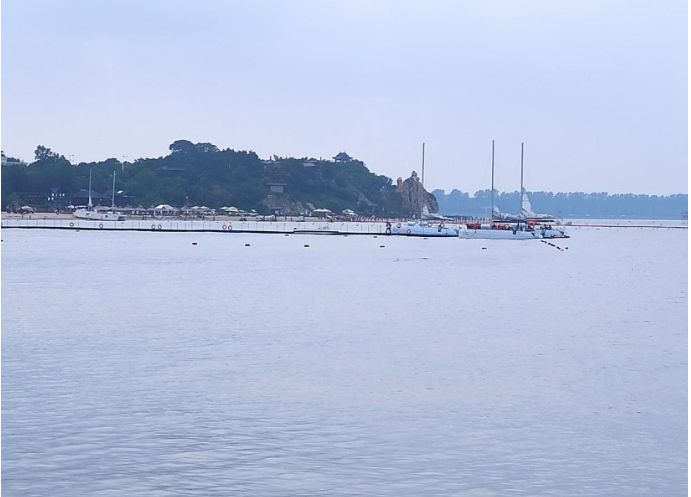 这是旁边的帆船基地.游客可以花钱坐帆船去深海里看看.每人几十块钱,价格还算可以接受。