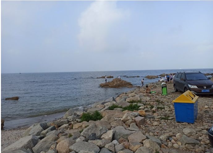 海岸边上礁石旁都是游人们在抓螃墅捕小鱼小虾.真的是非常热闹啊