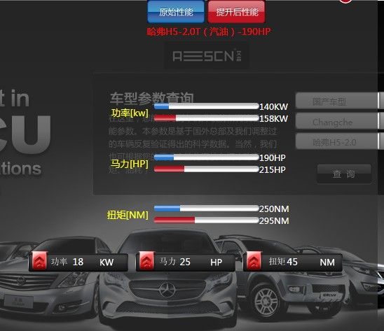 艾森发布哈弗H5 2.0T汽油程序方案:一切以安全、稳定为前提,在不损伤发动机寿命前提下,将动力优化至最佳,同时符合车主的驾驶需求,性能参数如下: