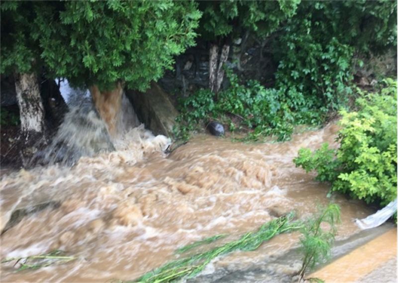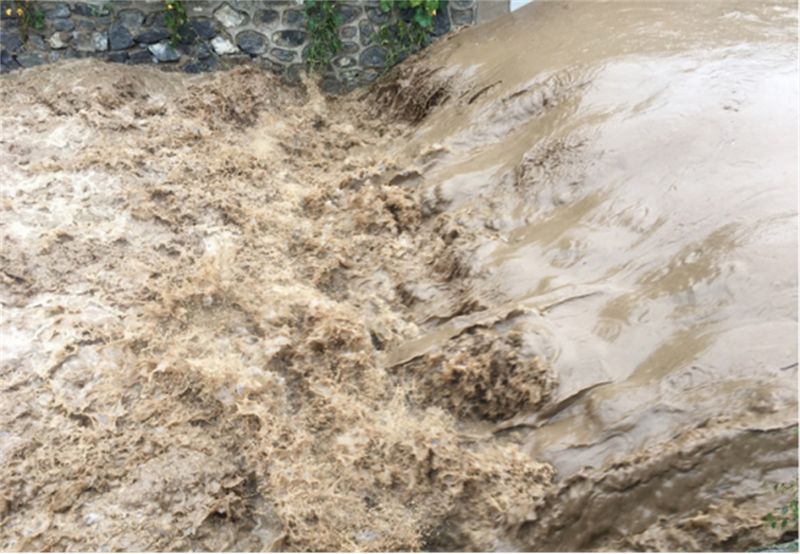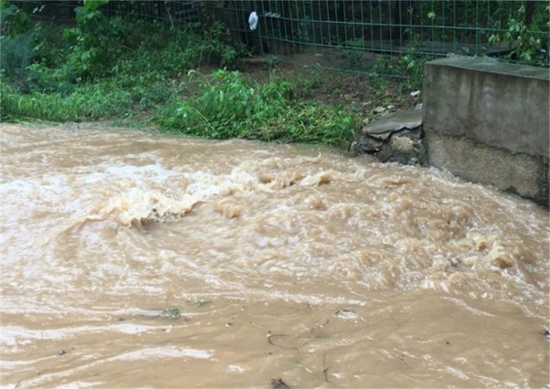 雨来了。我先在家躲躲雨!这阵雨真的好大。山上的水都下来了。混黄色的水滚滚流下来了!