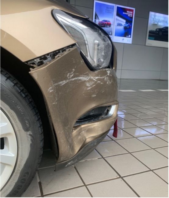 翼子板位置也被挤压到了,也会需要钣金油漆。