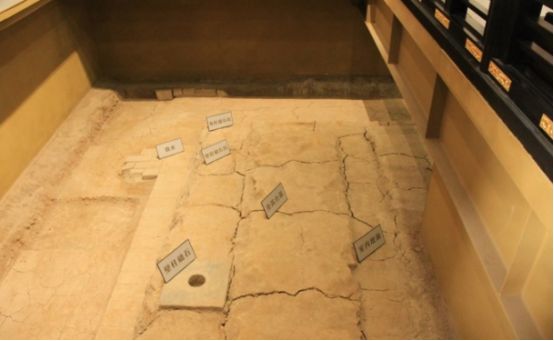 为保护柱础石坑等遗址,一层的高台遗址部分采用内部大跨度钢结构设计。展示的方式与天堂、明堂比较接近,即游客站在透明玻璃地板上可欣赏地下遗址全貌