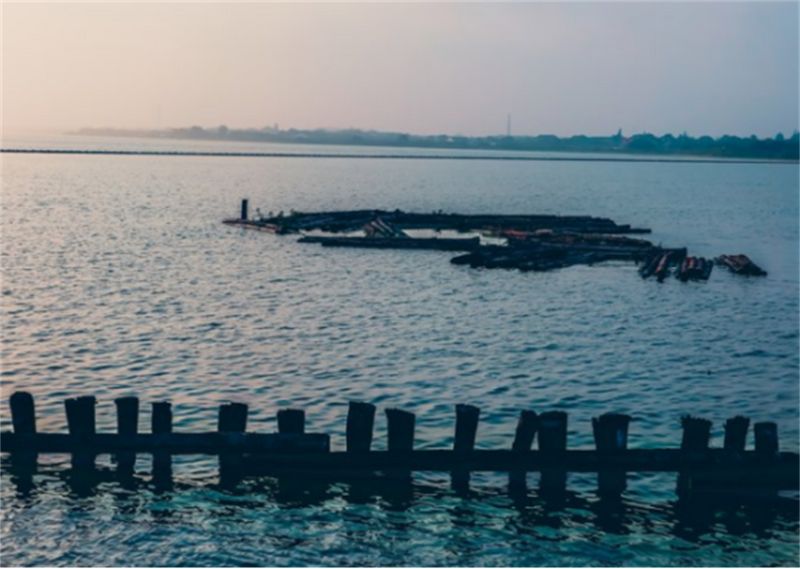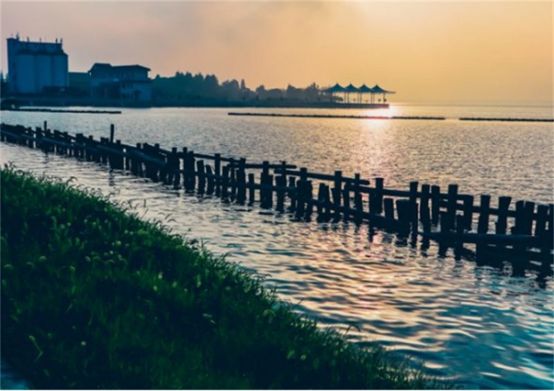 只是这几年从上游太湖过来的蓝藻在这里也有一定的发展,所以湖面上都拉起了这样的隔离带,临近岸边更是令人惋惜,湖水表面已经是一层厚厚的蓝藻了,气味嘛你懂的,我们闻多了也就习惯了。