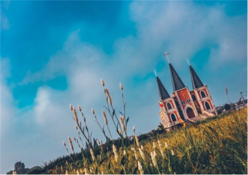 发现这里还有一座教堂,也是新建的,教堂前这一大片草地还没建设。