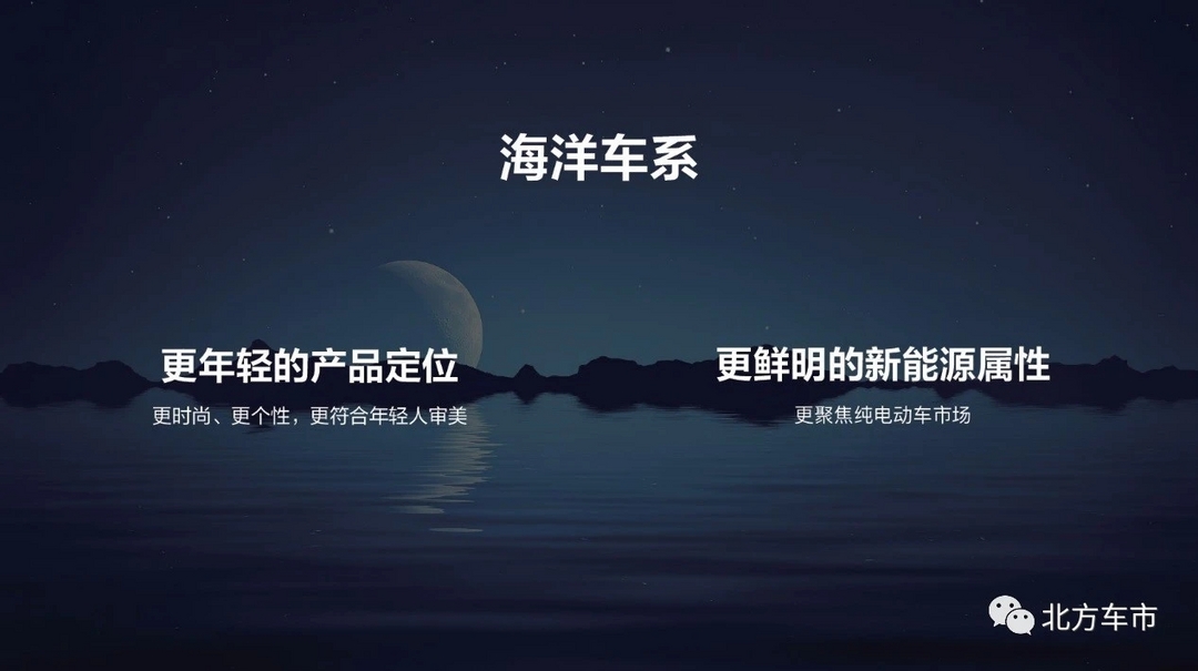 海洋车系是比亚迪推出的全新车型系列,专注于纯电动汽车的推广和普及,具有更年轻的产品定位,更鲜明的新能源属性。