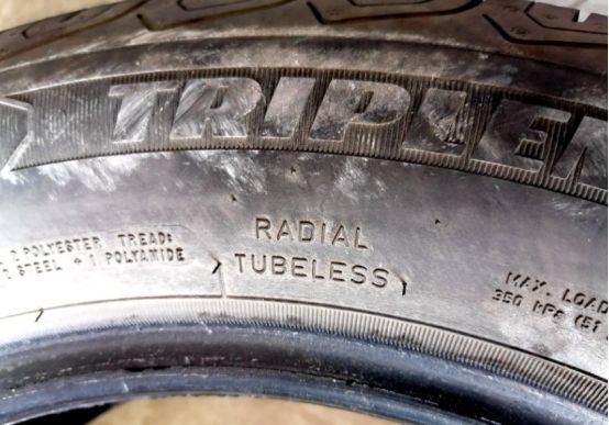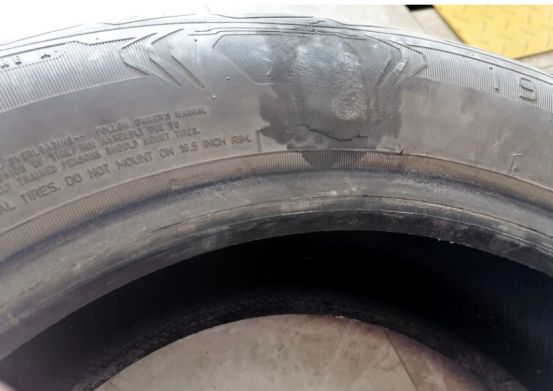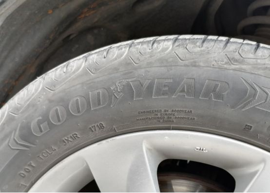 后来经过老板提醒,侧面修补的轮胎跑长途上高速还是有-定的风险的, 就给我找了一条固特异的别的系列的旧轮胎换_了,我看了看那个旧轮胎质量还是可以的,, 毕竟那条还是/成新的。