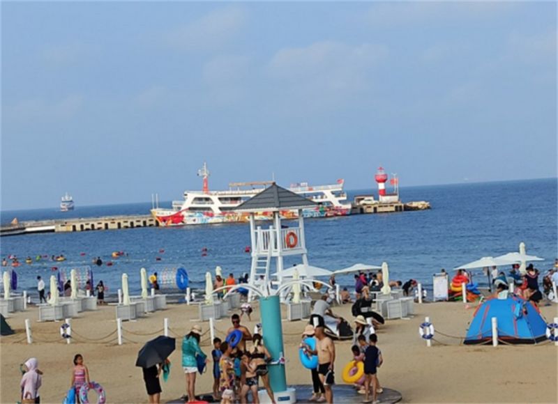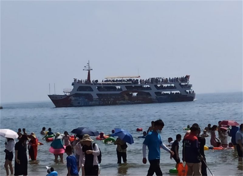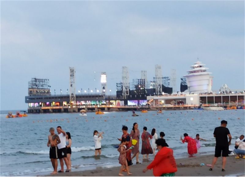 下午,我们去乘坐游轮浪淘沙号游船,去深海游玩了一番,眺望远处的秦皇岛犹如海市蜃楼一般,大概40分钟的航程能够让你将烦恼抛到脑后,所有的不快乐通通“丢”进海里。下船之后,继续去沙滩玩。傍晚时分,沙滩上的霓虹灯亮起来,晚上的电音派对、沙滩蹦迪开始了,非常的热闹。这个夏天,大家有时间可以约上小伙伴一起来欢乐湾游玩,可以乘坐浪淘沙号轮船乘风破浪,可以在沙滩游泳,晚上夜生活也很热闹哟!