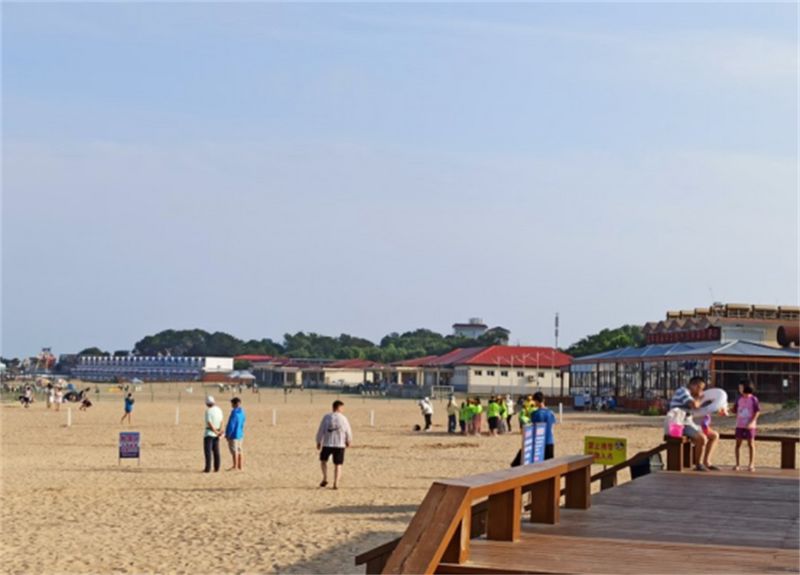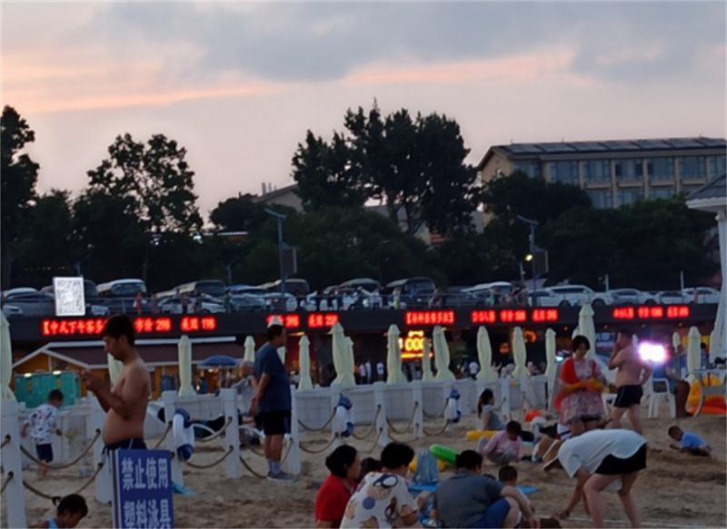 之前去海边沙滩玩没有买游泳圈,听说欢乐湾特别好玩,今天特地买了两个游泳圈,橡胶材质的,比外面卖的塑料做的好很多,花了五十块钱,感觉挺不错的。孩子们玩了几天了,看到大海还是那么兴奋,换好泳衣,拿着游泳圈就向大海跑去。这里的海水很干净,和鸽子窝公园的沙滩差不多,游客也特别多。之前没见过真正的海蜇,今天在这里看到了很多,大部分都是死的,可能是被防鲨网网住闹得。中午去朝朝小吃一条街吃的饭,味道还不错,补充了下 体力,顺便休息了一会儿。