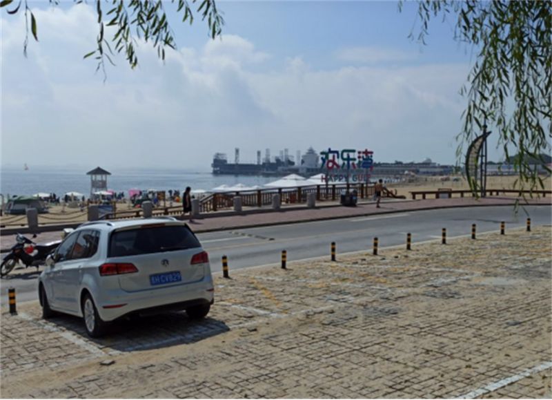 在海天一色玩得很尽兴,吃完晚饭回到酒店洗漱休息,一觉睡到一点钟。洗漱完,出来随便吃一点早饭,准备打车去欢乐湾,但是却打不上车,可能是司机嫌距离太近不接单。手机导航距离不到两公里,于是我们决定带着东西步行取欢乐湾。大概走了半个小时才到,小孩子有的比较慢,累了就让大人抱着走一段,听说快到欢乐湾了才下来自己走。