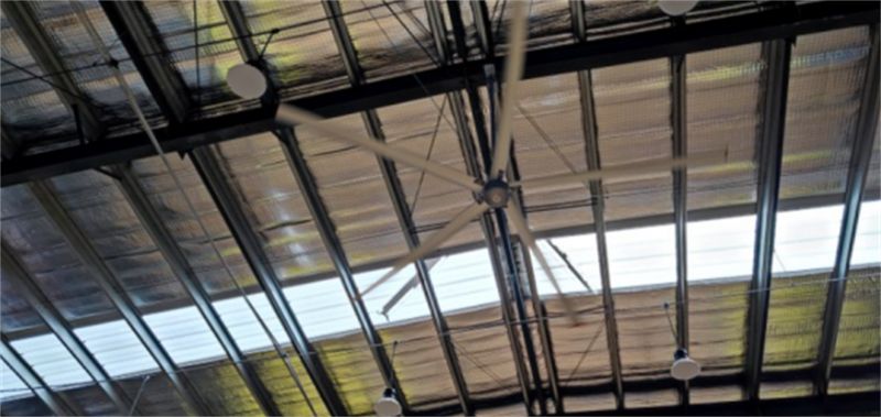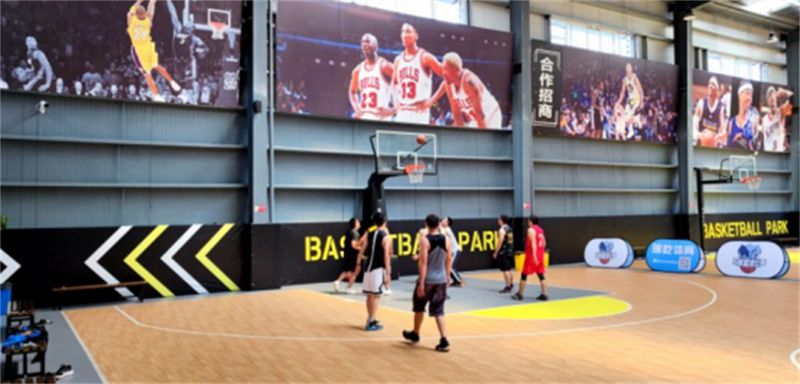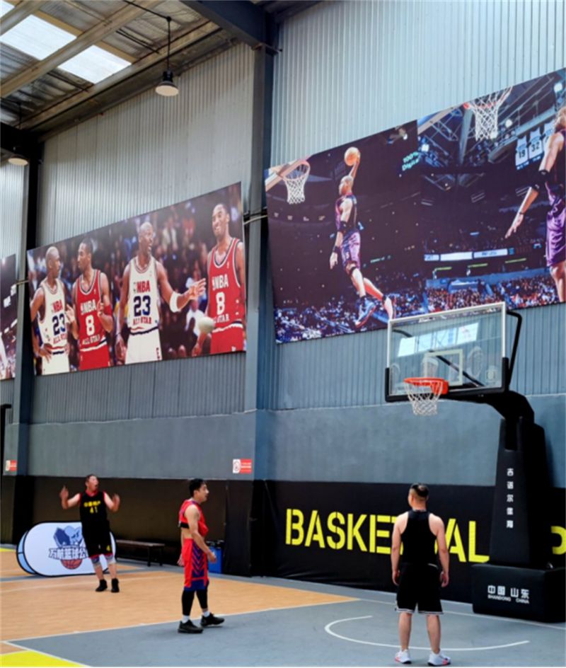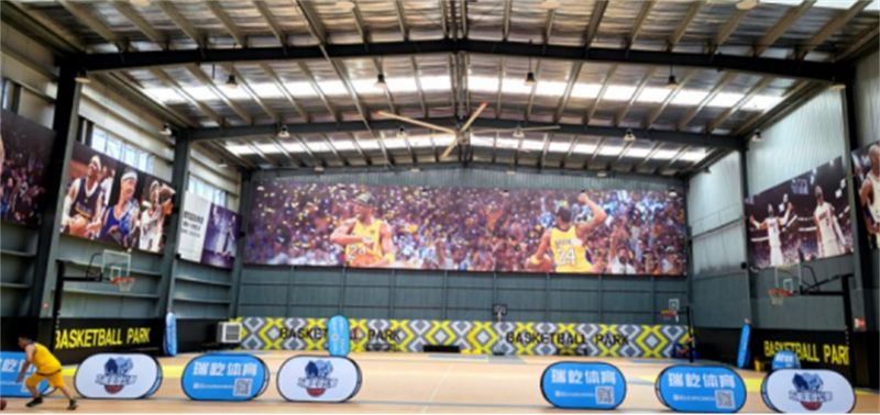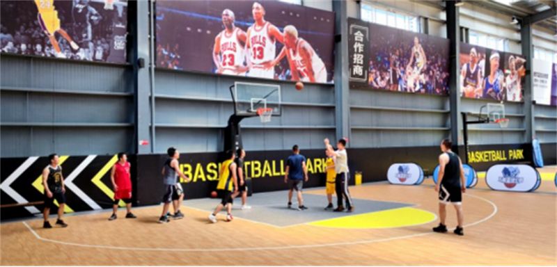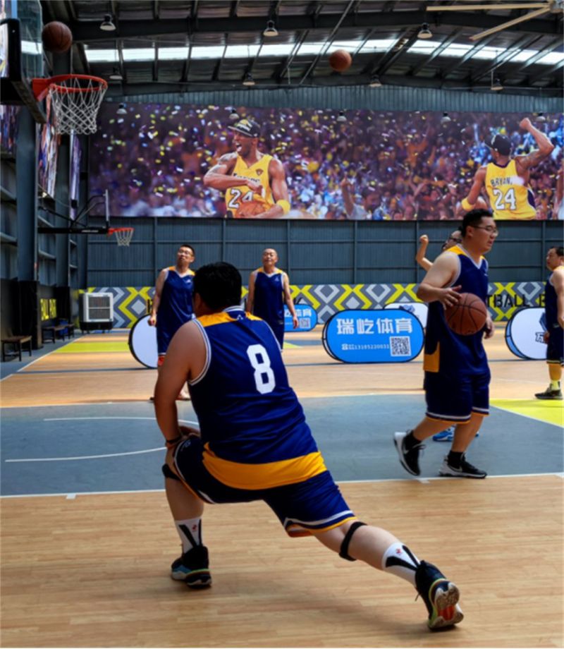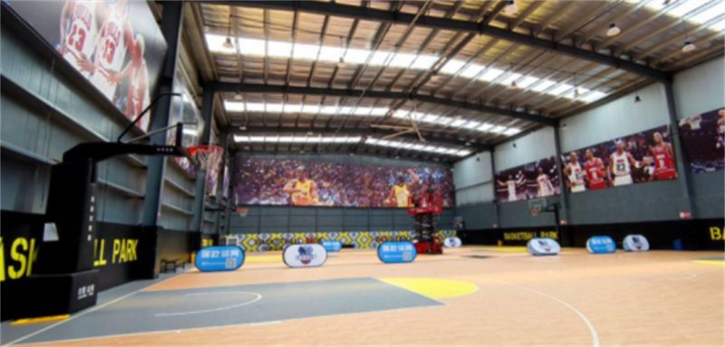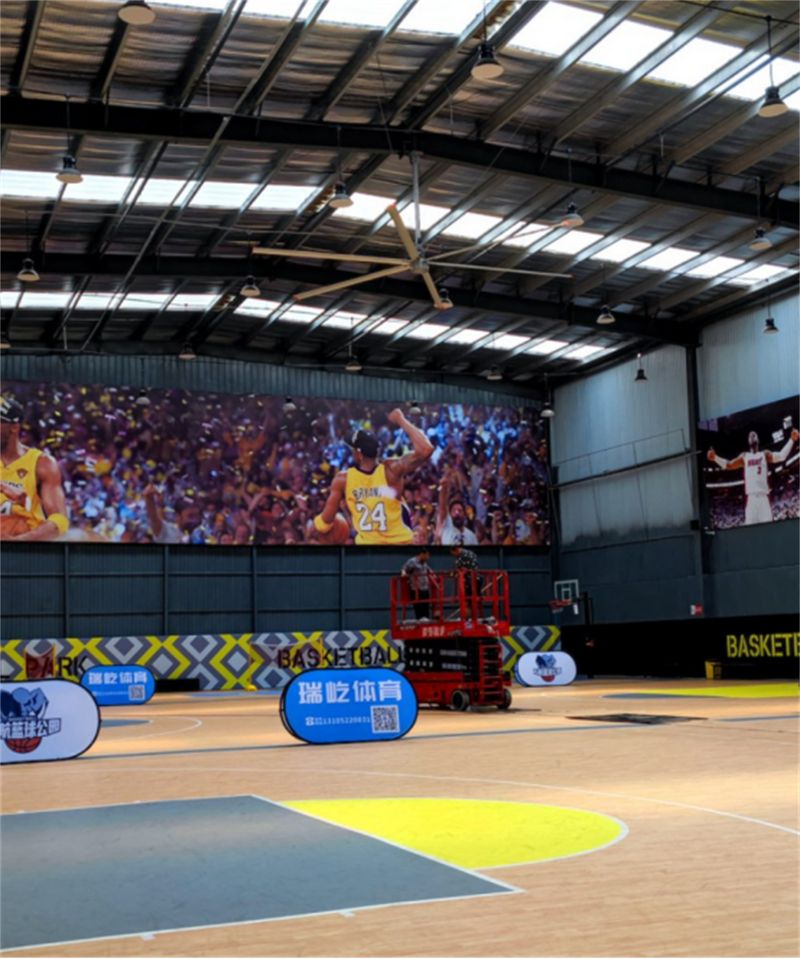 屋顶有两只举行风扇, 夏天打球也不闷热了