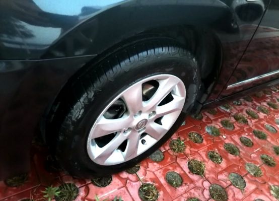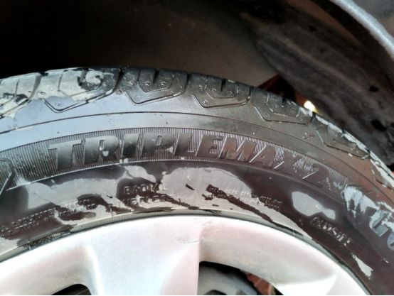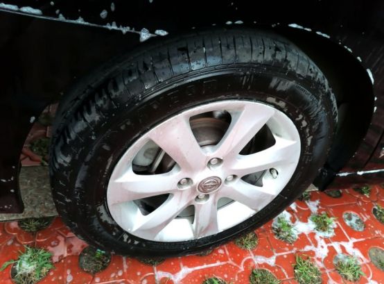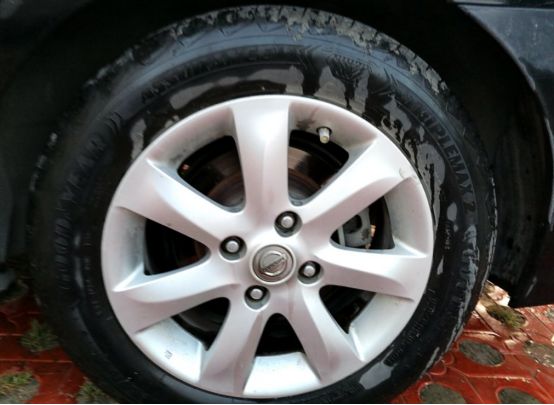 干燥的轮胎也洒点水,清洁一下脏污和小石子。经过三年多的实践使用逸乘二代的轮胎还是经得住考验的。
