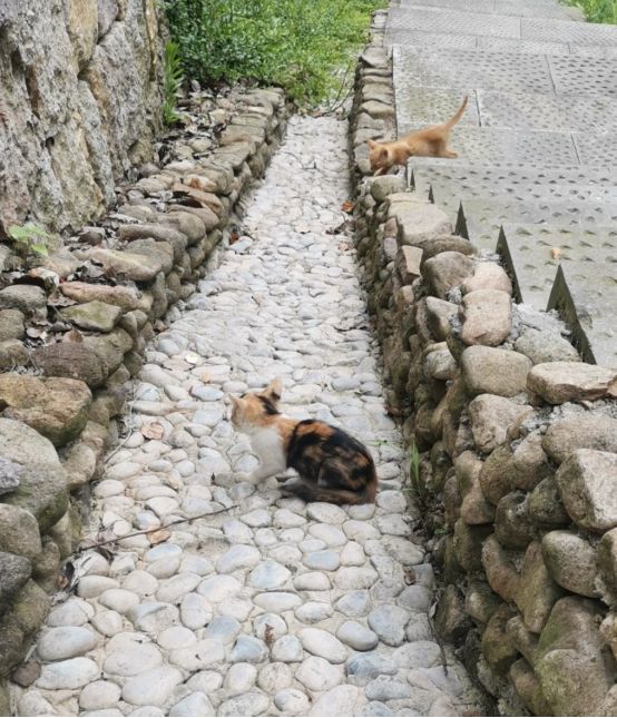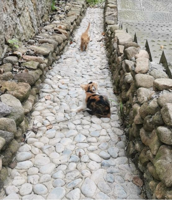 小猫咪也因为我们的到来,喵喵地附身过来,黄白相间,尽显小猫咪的小可爱,