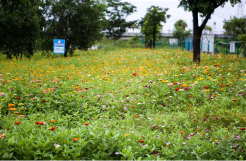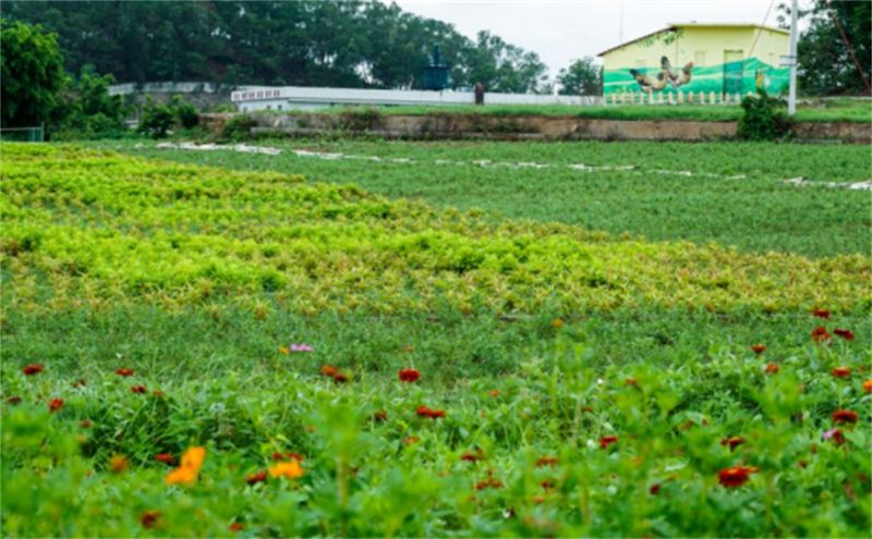 进入景区里,地里种满了花花草草,花儿开得正艳。