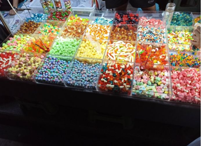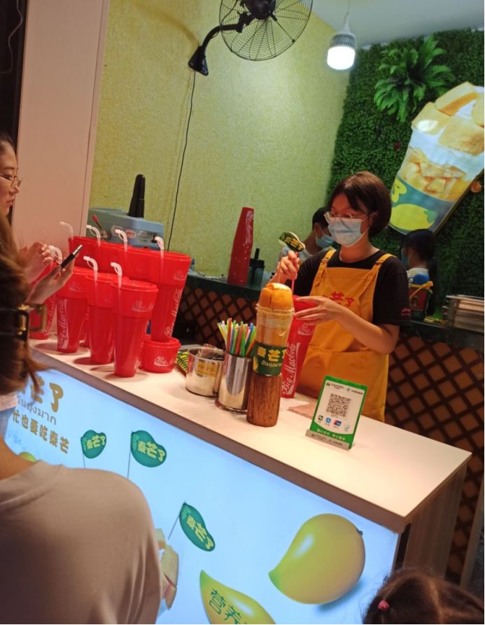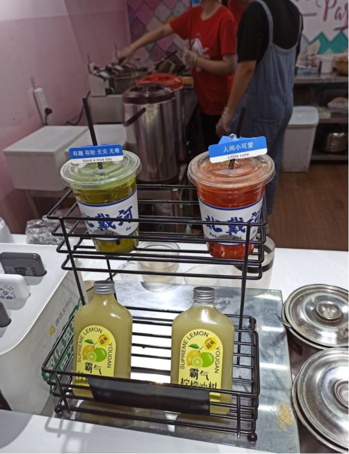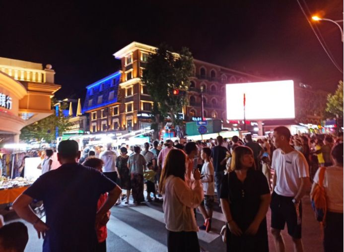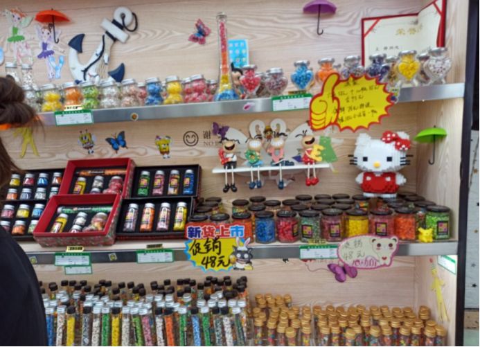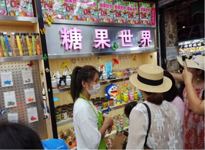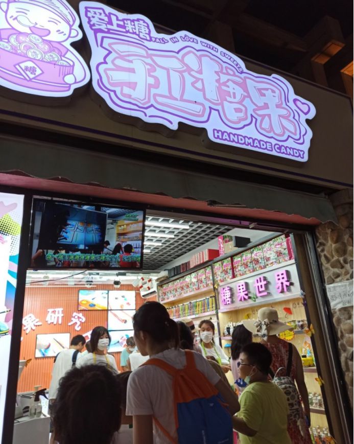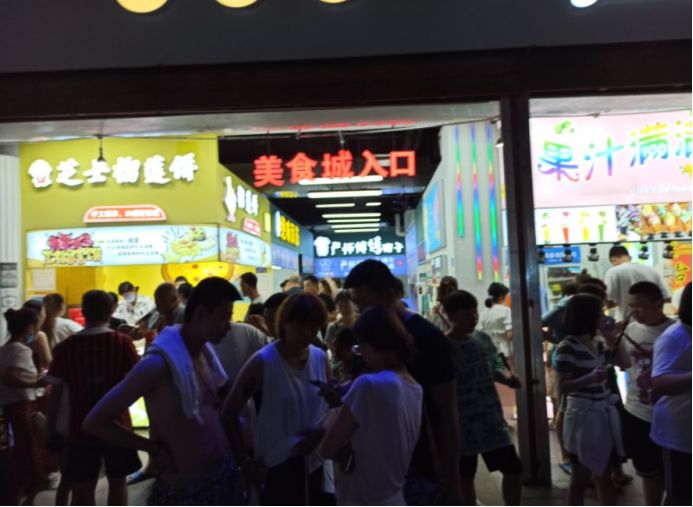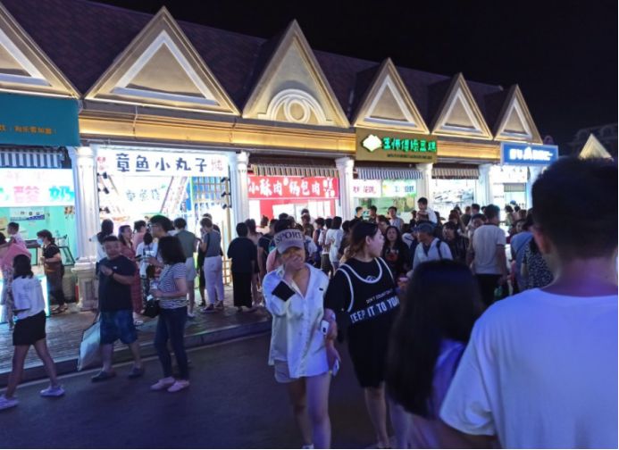 我们首先在糖果世界里给孩子们买了一些糖果,都是店里自己手工制作的,味道还不错,价格确实贵,三小瓶糖果七十多块钱。然后接着逛,孩子们有点饿了,然后买了一份广东肠粉和一份章鱼小丸子,没有地方吃,只能在路边蹲着吃或者边走边吃。这点东西当然不够吃了,接着往里走,看到小酥肉&锅包肉,给孩子买了一份锅包肉,味道还可以。不能光吃东西啊,再买点饮料喝啊,看街上很多人都拿着大杯饮料喝,于是也去泰芒了买了一杯,25块钱杯,上面是橙汁,下面是可乐,很有创意的饮料。最后买了一份老北京爆肚吃,味道还不错,孩子们都喜欢吃。过了夜市,再往前走五分钟就是大海。 一直顺着人流走就行,根本不需要导航,路痴都不会走错。