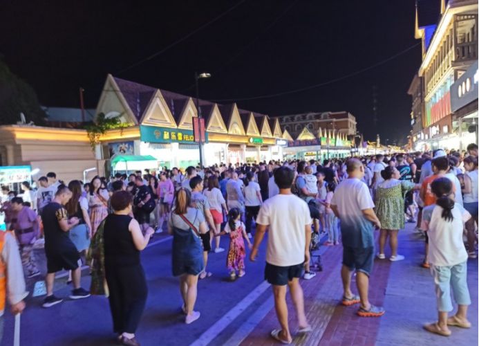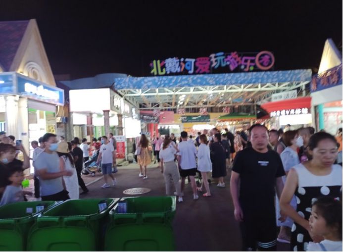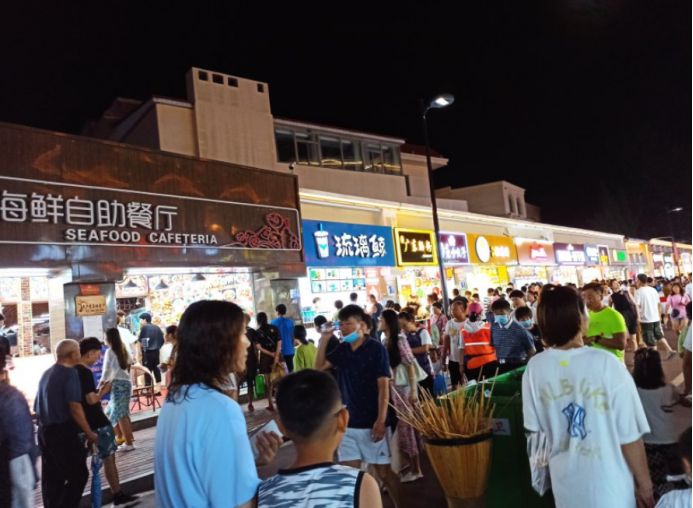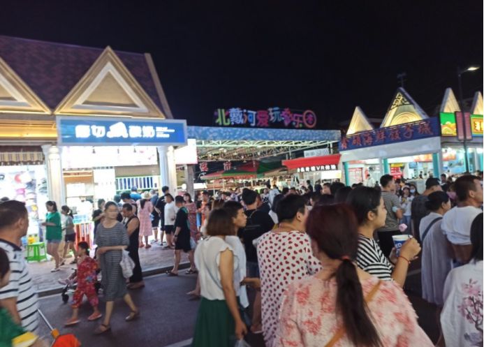 去过北戴河的人都说,来到北戴河旅游,一定不能错过这里的刘庄夜市,因为这里是北戴河的一处网红景点。明天就要返程了,所以准备去刘庄夜市逛逛,看孩子们买点东西,顺便买点东西带回去送人。来之前在网上就知道刘庄夜市很热闹,到了现场才知道到底有多热闹,真的是人山人海,几乎是人挨人人挤人。不得不说刘庄夜市真的很不错,道路两旁都是各种小吃店和海鲜干货以及礼品店,很多都是没有听说过的牌子。