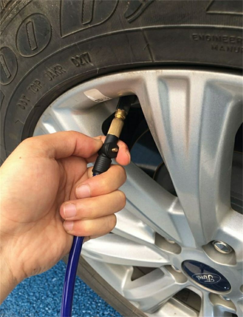 好在我有备,车上一直放着一个这样的便携充气泵,赶快凑合一下,打压,好去修理补胎。所以说,再硬的轮胎也挡不住扎胎这个就是豪车,好几千的轮胎也不能避免。