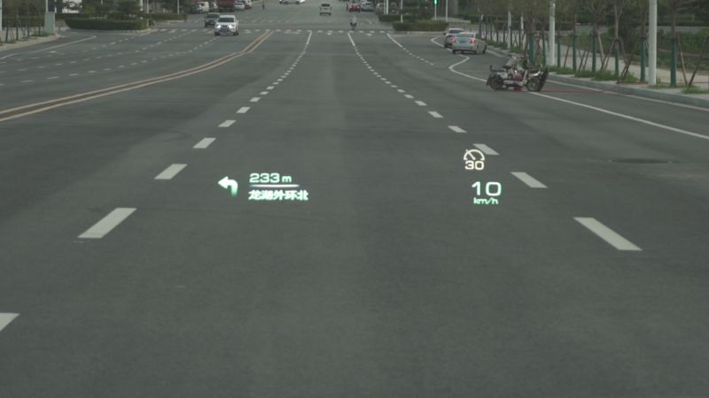 第二、AR HUD AR HUD整体表现还好,目前体验,就算是炎热天气,也不会出现看不清模糊严重的情况,毕竟相当于在太阳下开了个投影仪一样,目前只能调节高低和亮度,不能调节左右。