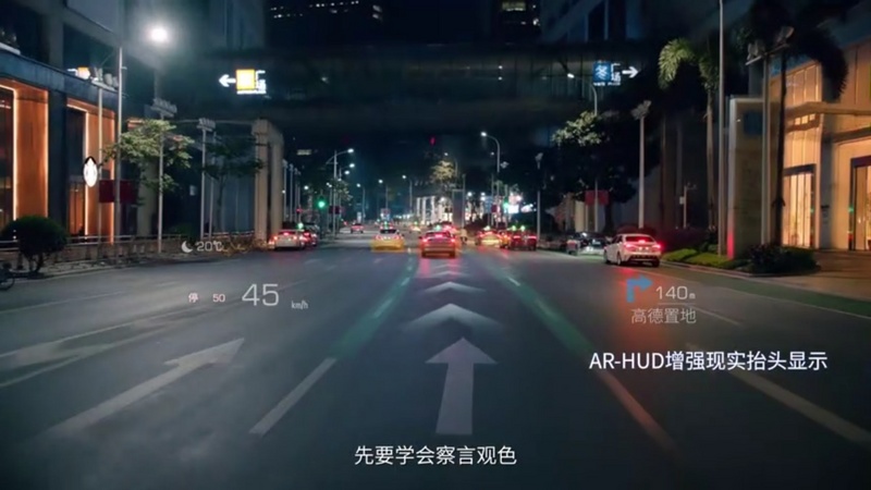 AR HUD显示信息,目前还需在完善,因为看到宣传片中,hud上面除了现在的车速、限速、导航等信息,还有天气等信息的显示,这点随后肯定可以ota升级,我觉着hud可以显示电话来电,歌词等等信息,自定义即可!