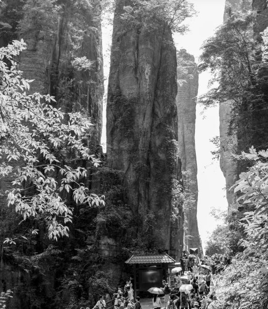 还有一柱烟,是主峰东侧边悬空凌出的一段山石,而且螺旋盘绕,在云雾缭绕中,就好像是烟囱里冒出来的白烟一样。而下面,就是险峻异常,奔腾不息的清江水,此情此景,绝无复制,给人以无限想象。