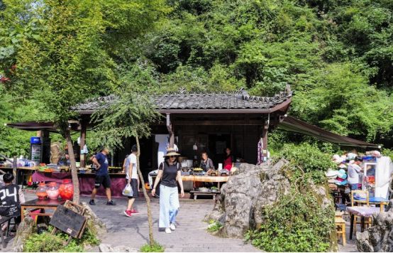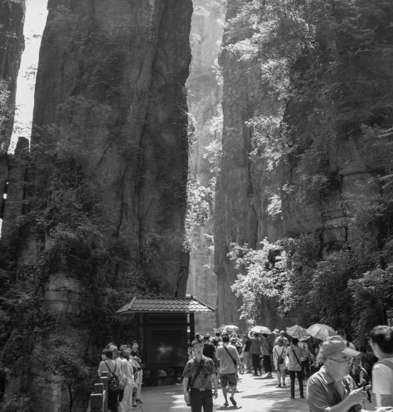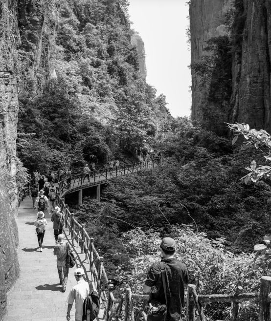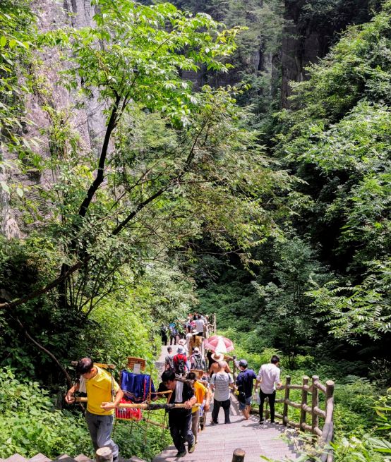 行走途中,总有游客发声长啸,呼朋引伴;或引吭高歌,发泄情感,调适心情,山谷间不时传来阵阵回音,经久不息。