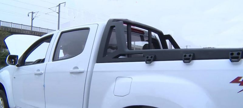 防滚架和货箱的挂钩也都有,炭黑的设计已经偏向于乘用车的审美还是不错的。