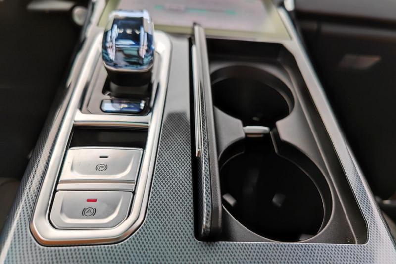 内饰的设计也有很有看点,比如说水晶电子档把,酷炫漂亮。车内很多镀铬装饰条的设计,整体质感很豪华,而杯架也比较深,水放进去很稳,这一点做的特别人性化。