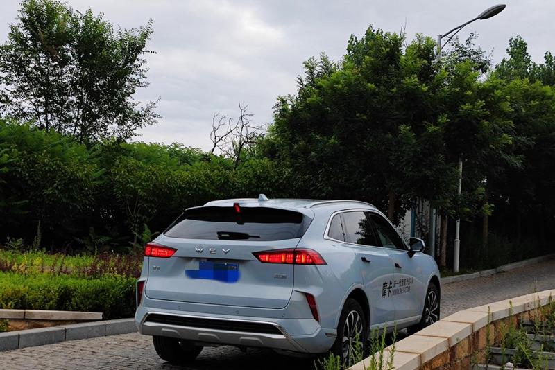 真皮做的细节特写,手感很舒服,而且坐上去感觉特别好,有加热、通风、按摩功能,座椅上WEY的标识挺显眼的。