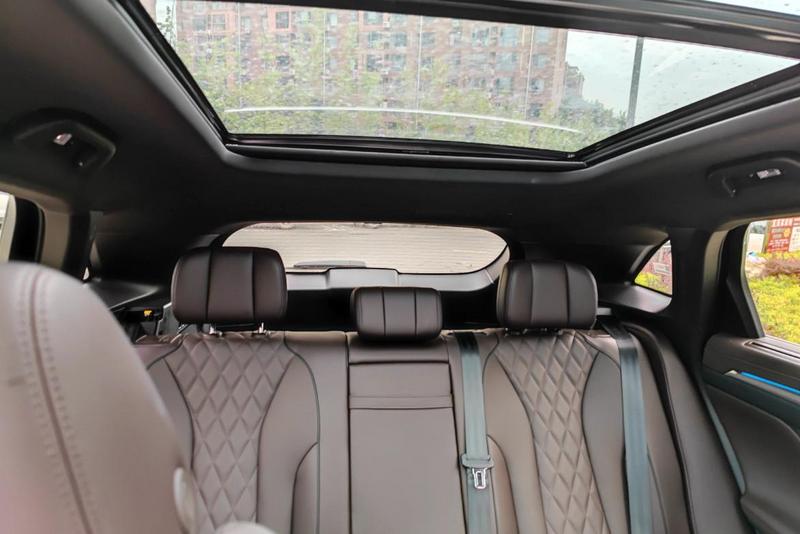 摩卡车内空间非常大,后排中间位置有头枕,而且地板很平,就算是坐三个成年人也没什么问题,另外全景天窗真是漂亮,面积超大,可开启的面积也非常大。