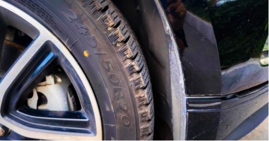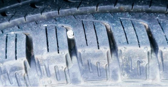 看着看着突然感觉不对,轮胎上似乎扎进去了一个大螺丝。