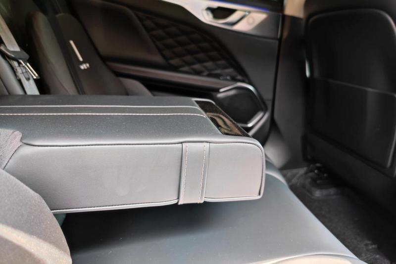 后排中央扶手很宽大,两个人也完全够用了。