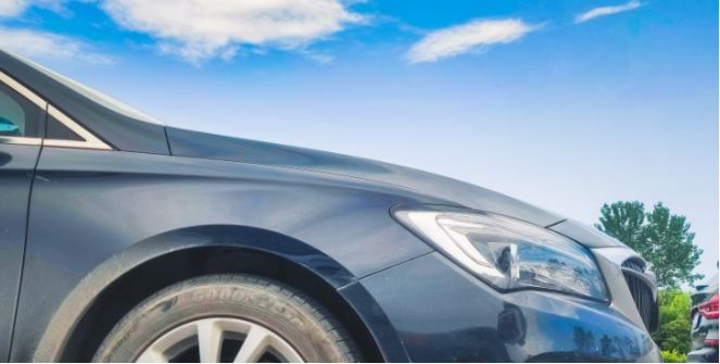 侧面可以看到,驾驶侧的凹痕。