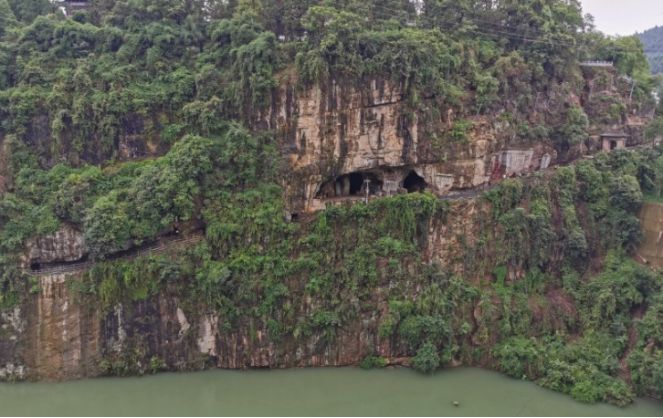 对面就是三游洞了,俺手机50倍焦距可以看清洞里的一切~