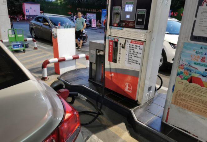 回去路上,油表见底,加个油去