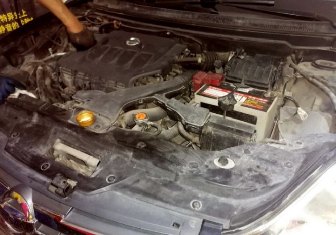 发动机舱太脏了,一会儿清理一下。